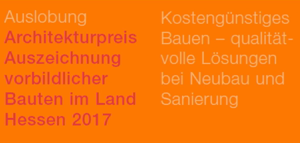 Vor diesem Hintergrund werden für die Auszeichnung vorbildlicher Bauten im Land Hessen innovative und zukunftsfähige Lösungen mit hohem architektonischen/