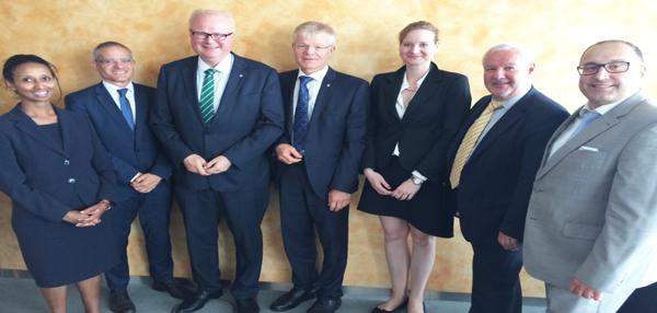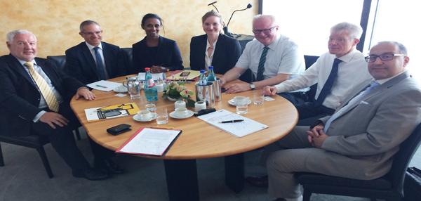Mit dabei waren u.a. Thomas Reimann, Vorsitzender des Vorstands des mittelständischen Bauunternehmens ALEA AG, Frankfurt am Main, und Vorsitzender des VhU-Bau- und Immobilienausschusses, sowie Gerald Lipka, Geschäftsführer des BFW Landesverbands Freier Immobilien- und Wohnungsunternehmen Hessen/ Rheinland-Pfalz/ Saarland e.V. Für den BDI-Steuerausschuss waren Andreas Schmitt, BASF SE, Ludwigshafen, sowie Yokab Ghebrewebet, Referentin der BDI-Abteilung Steuern und Finazpolitik, vertreten.“