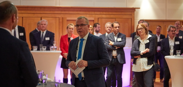 Man war sich einig, dass gerade in der Region bezahlbarer Wohnraum fehlt, was zu einem verschärften Fachkräftemangel führt und die Unternehmen nachhaltig belastet. Begrüßt wurde die Initiative zum „Großen Frankfurter Bogen“ durch Staatsminister Al-Wazir, doch sah man es ausgesprochen kritisch, die zusätzliche Anzahl von Menschen mit der vorhandenen Infrastruktur zu transportieren. 200.000 zusätzliche Wohnungen bedeuten etwa 750.000 Menschen, die binnen 30 Minuten vom Umland zum Hauptbahnhof gelangen sollen. Unmöglich, so das Credo, hier verlangen die Experten schnelles Handeln. Pragmatisch fordert es Reimann: „Ich fühle mich an die Herausforderungen zu Wiedervereinigungszeiten erinnert. Ost und West haben die Verkehrsinfrastruktur gelöst, indem die Beschleunigungsgesetze für zügige Verfahren sorgten. Diese Gesetzte, welche unverändert vorhanden sind, müssen in Kraft gesetzt werden, um mit Mut schnellere Verfahren zu gewährleisten. Wir reden schon viel zu lange, wie etwa bei der Regionaltangente West und lösen die Probleme nicht. Wir wissen aber am Praxisbeispiel der Wiedervereinigung, dass es gehen kann.“ Das Publikum zollte herzhaften Applaus.
