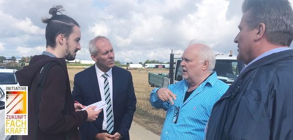 Andy Möller und Matthias Ohms informieren sich bei Auszubildenden vor Ort auf der Baustelle mehr