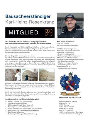 An dieser Stelle stellen wir unsere Mitglieder vor und verlinken auf die Internetseiten. Mitglieder, die gerne auf diesen Seiten erscheinen möchten, wenden sich bitte an den webmaster@bdb-baumeister.de.